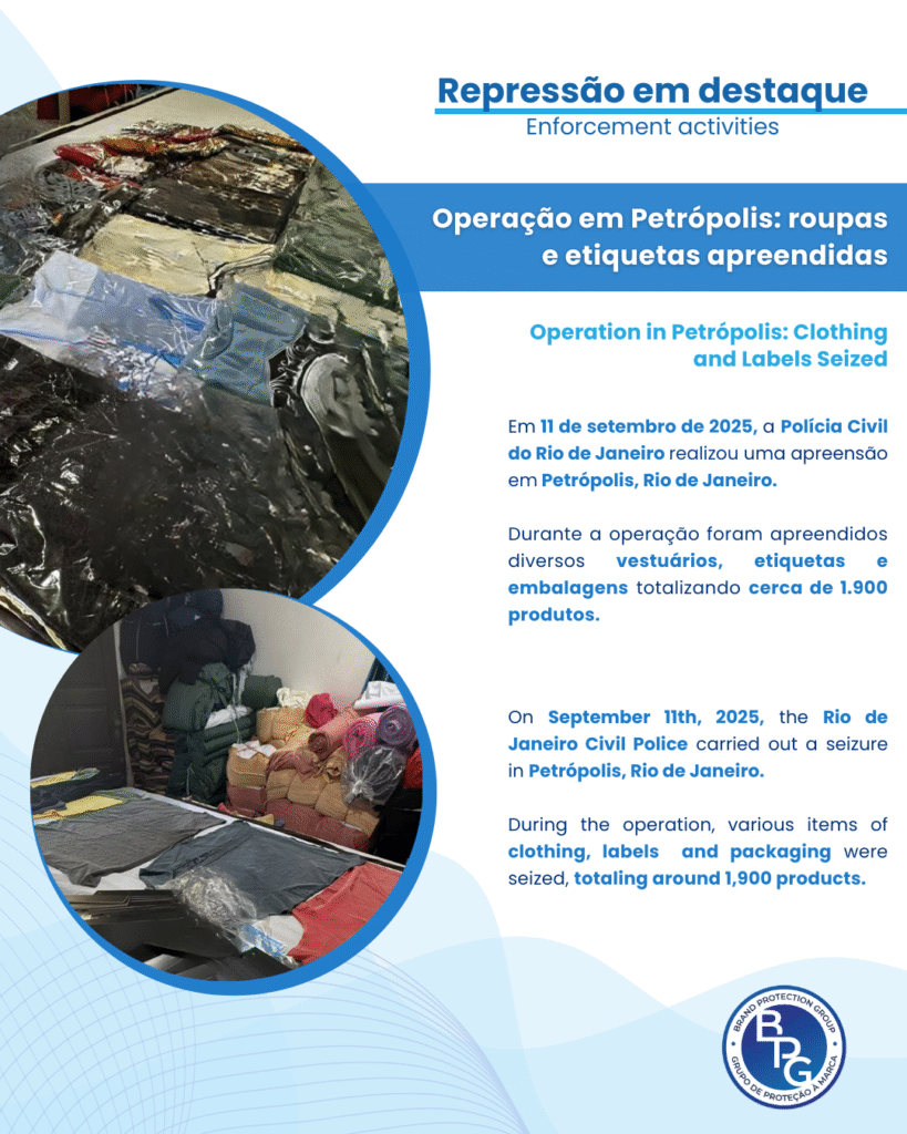 Enforcement activities – Operation in Petrópolis: Clothing and Labels Seized