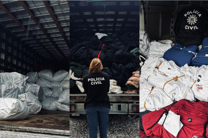 The Civil Police of Rio Grande do Sul, through the Consumer Rights Protection Police Station (DECON), carried out an operation in Brusque on Tuesday (26) that resulted in the seizure of more than 45,000 pieces of counterfeit clothing. The action is part of Operation Nemesis, which aims to combat criminal organizations linked to the production and sale of counterfeit products.