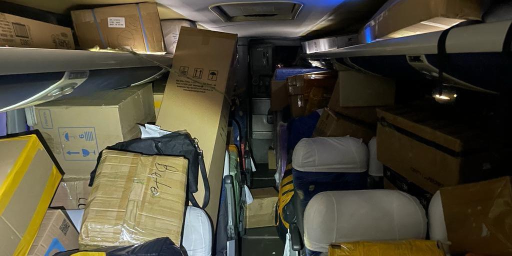 On this Friday (24) morning, the Federal Revenue Office (RF) seized a tour bus on BR-135, leaving Montes Claros towards Bocaiúva, North of Minas, after finding a large amount of goods and import objects in the luggage compartments and inside the vehicle. According to the RF, the estimated value of the goods is at least BRL 400 thousand. Both the bus and the products were forwarded to the Federal Revenue Office’s Warehouse of Seized Goods in MOC.