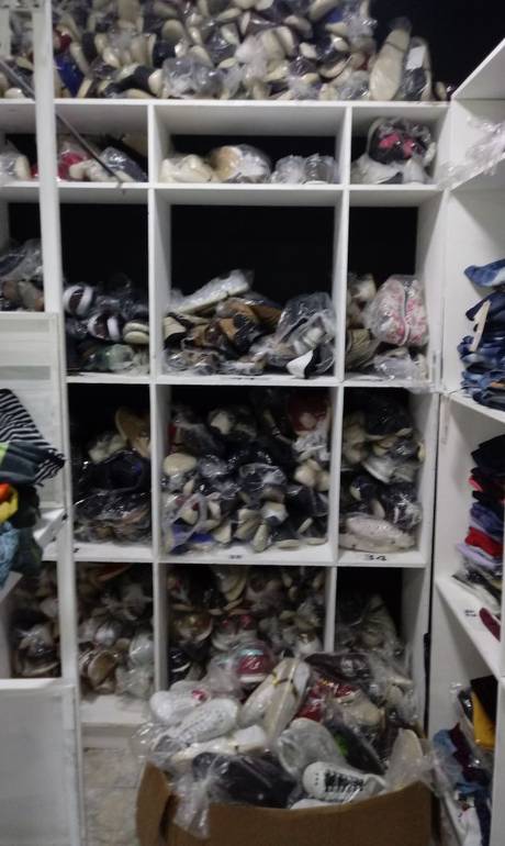 Police seizes four tons of counterfeited products in a bus garage in Rio de Janeiro