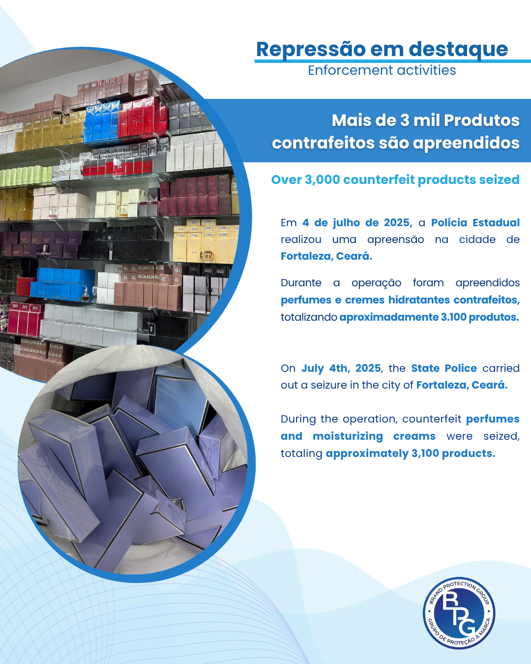 On July 4th, 2025, the State Police carried out a seizure in the city of Fortaleza, Ceará. During the operation, counterfeit perfumes and moisturizing creams…