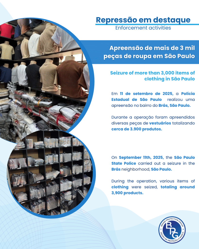 Repressão em destaque – Apreensão de mais de 3 mil peças de roupa em São Paulo